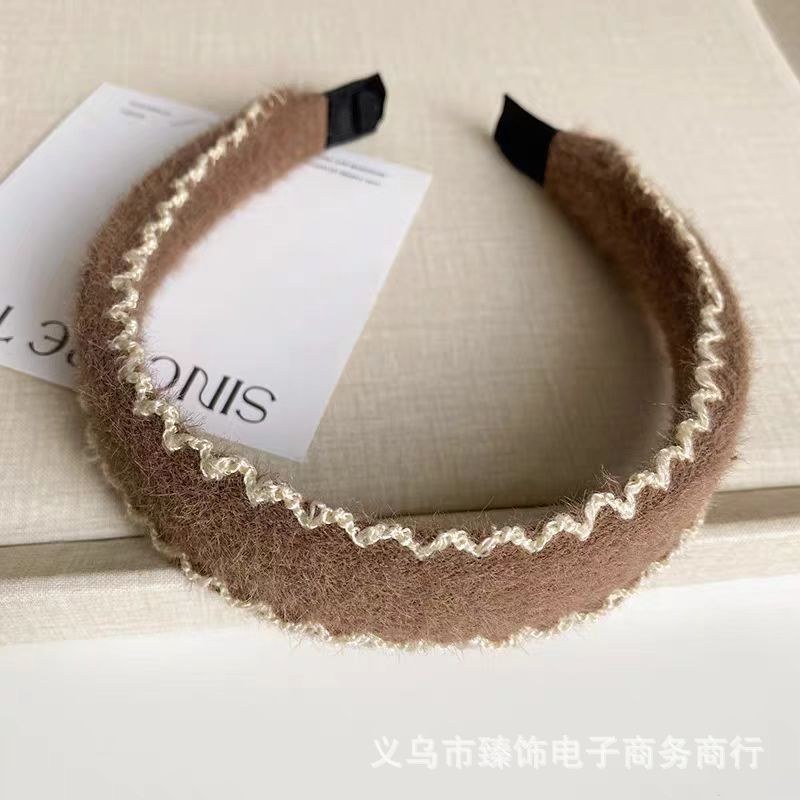 D8フェイクファーヘアバンド-ベージュ