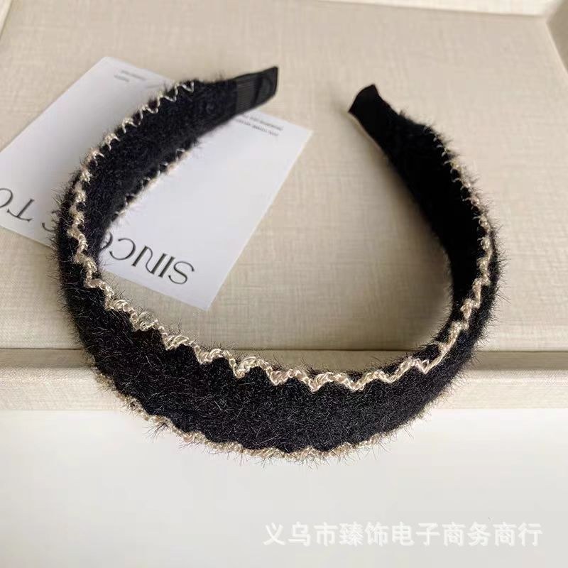D8フェイクファーヘアバンド-ベージュブラウン