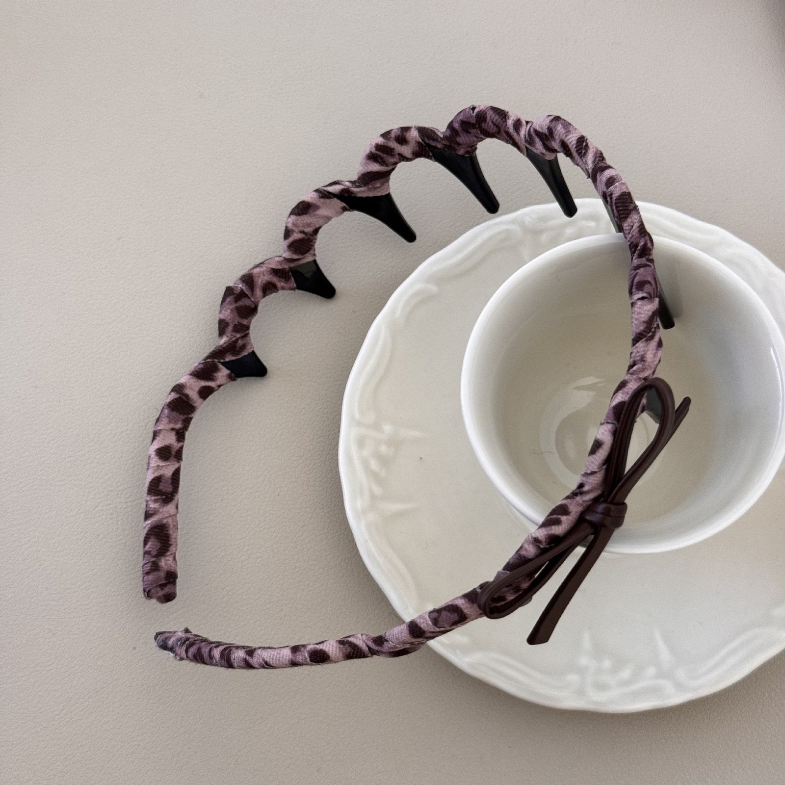 D8フェイクファーヘアバンド-ベージュ
