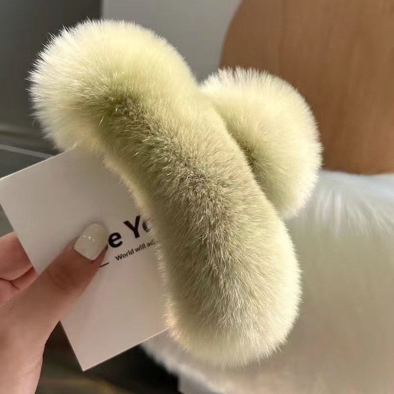 D8フェイクファーヘアバンド-ライトグリーン