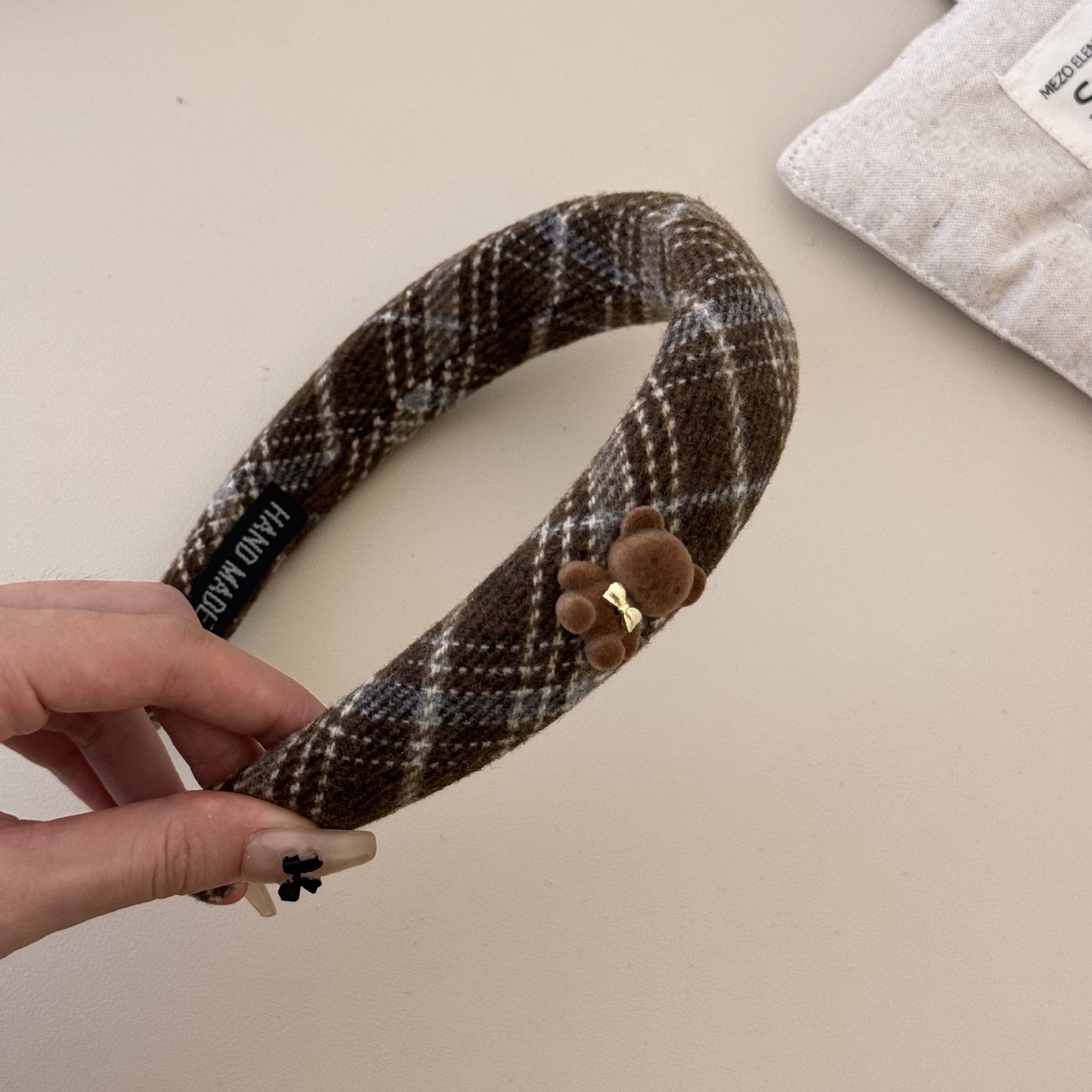 D8フェイクファーヘアバンド-ベージュブラウン