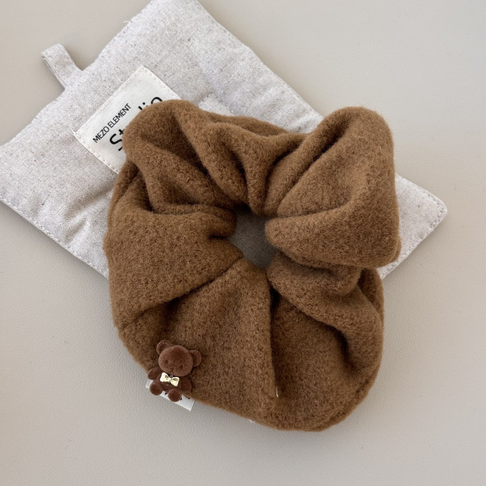 D8フェイクファーヘアバンド-ベージュブラウン