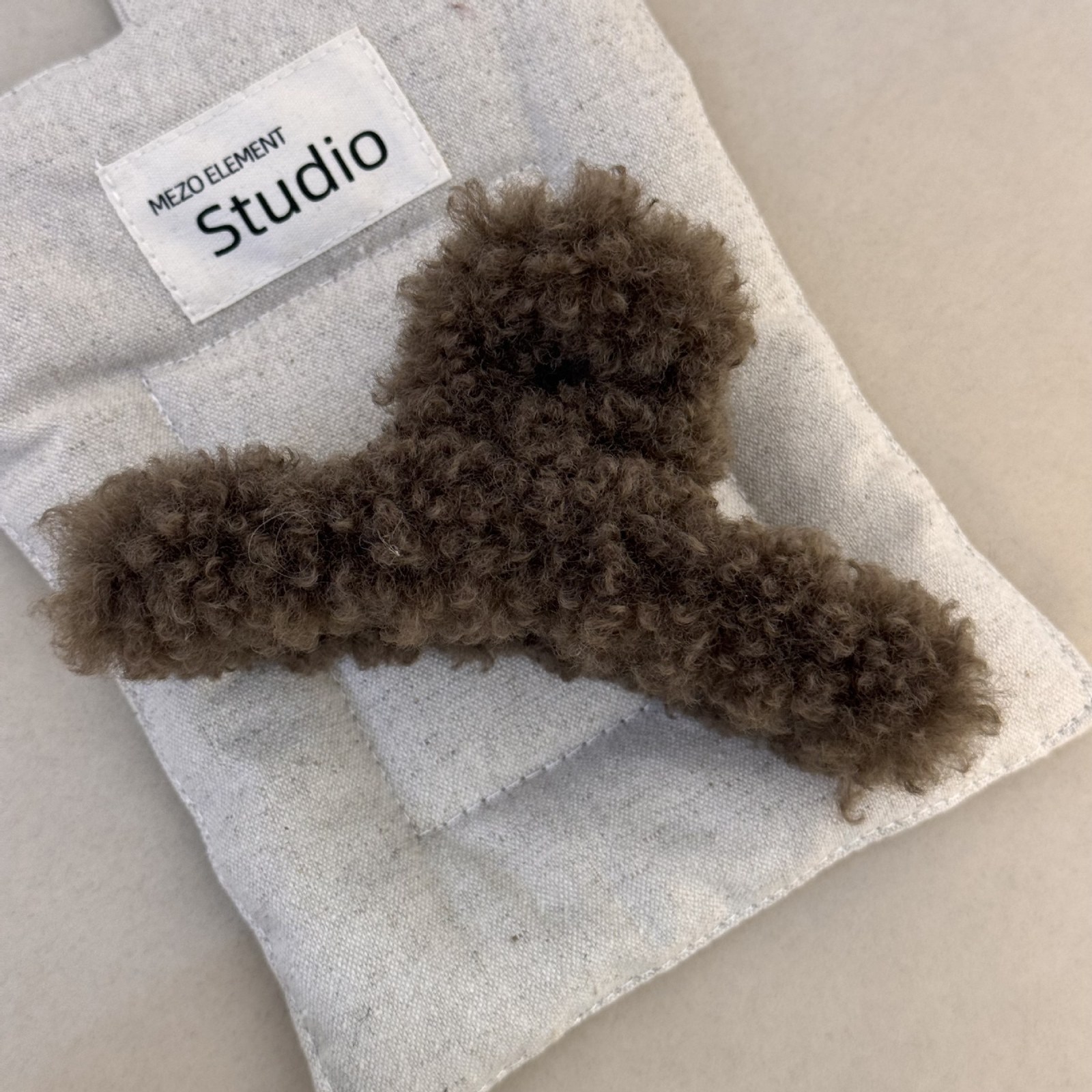 D8フェイクファーヘアバンド-ベージュ