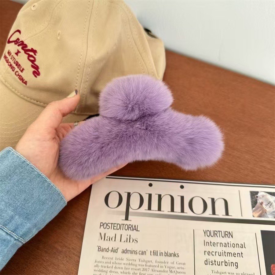 D8フェイクファーヘアバンド-グレー