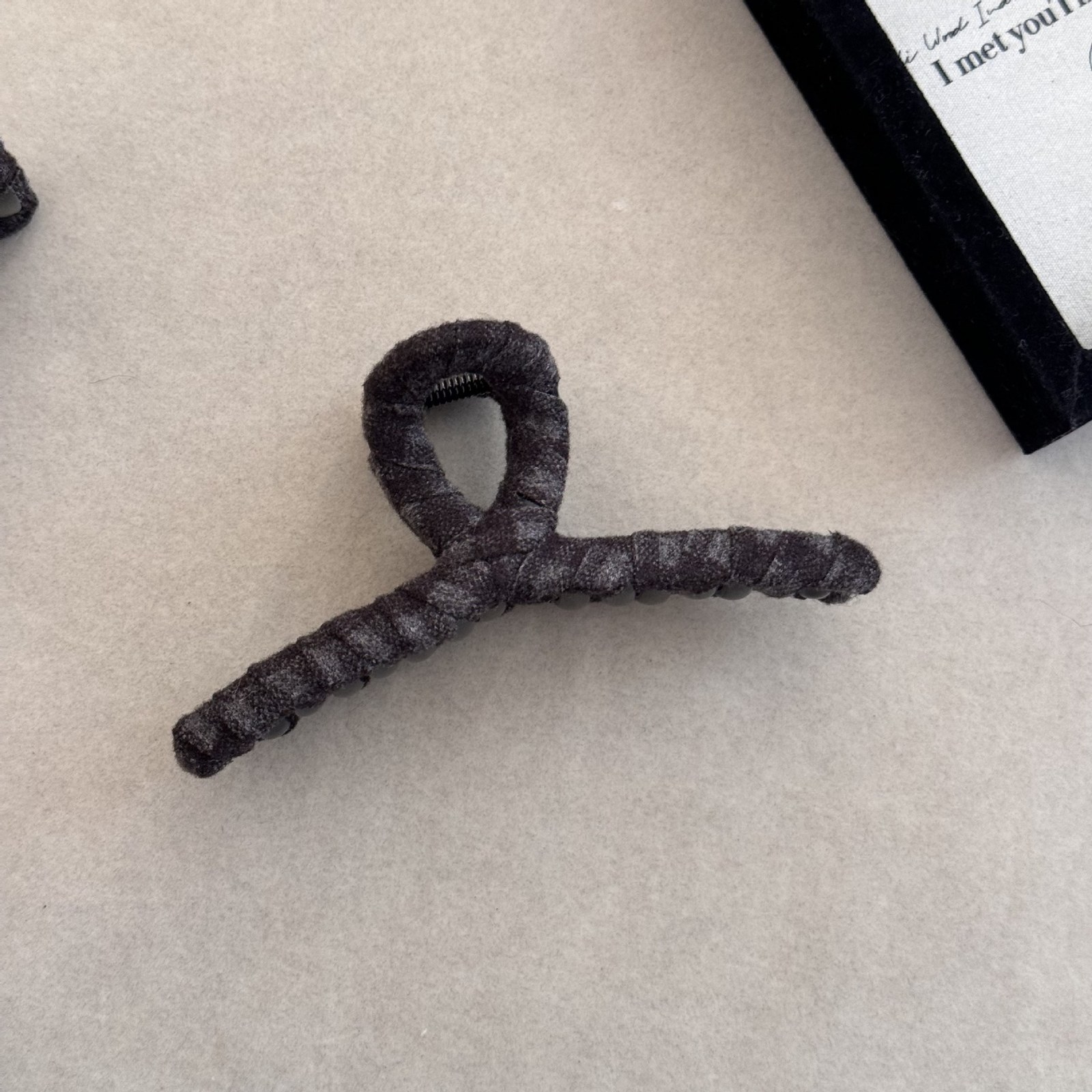 D8フェイクファーヘアバンド-グレー