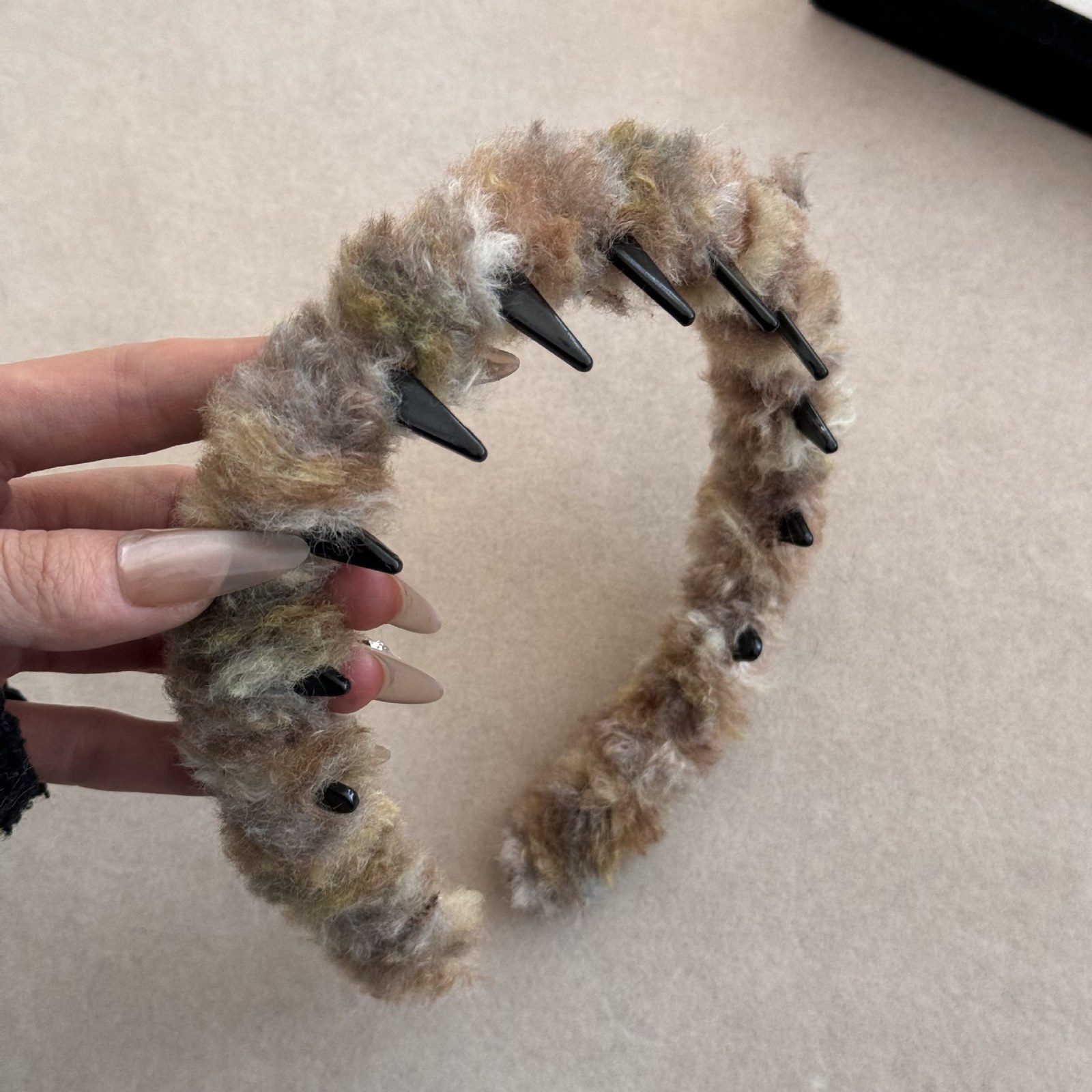D8フェイクファーヘアバンド-カーキ