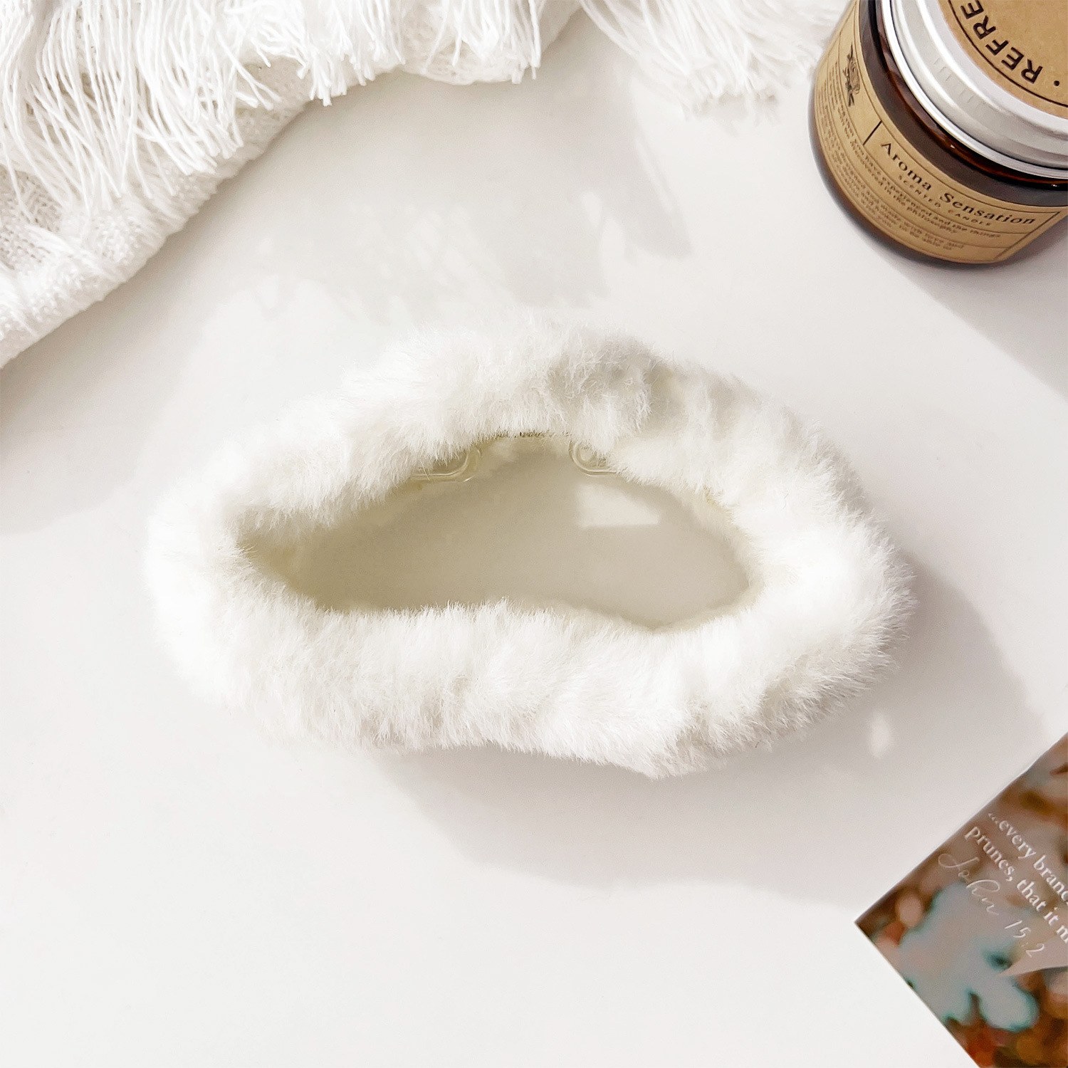 D8フェイクファーヘアバンド-クリームホワイト