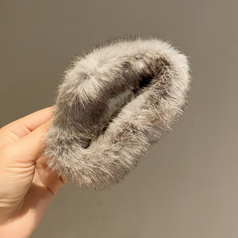 D8フェイクファーヘアバンド-ブラック