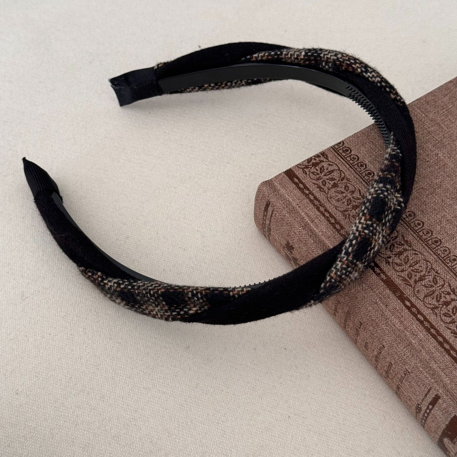 D8フェイクファーヘアバンド-ベージュブラウン