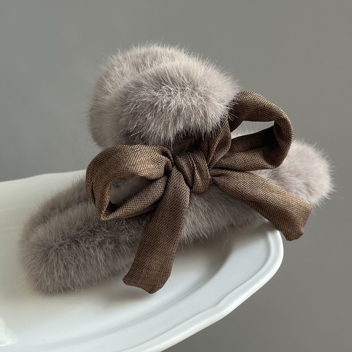 D8フェイクファーヘアバンド-ベージュ