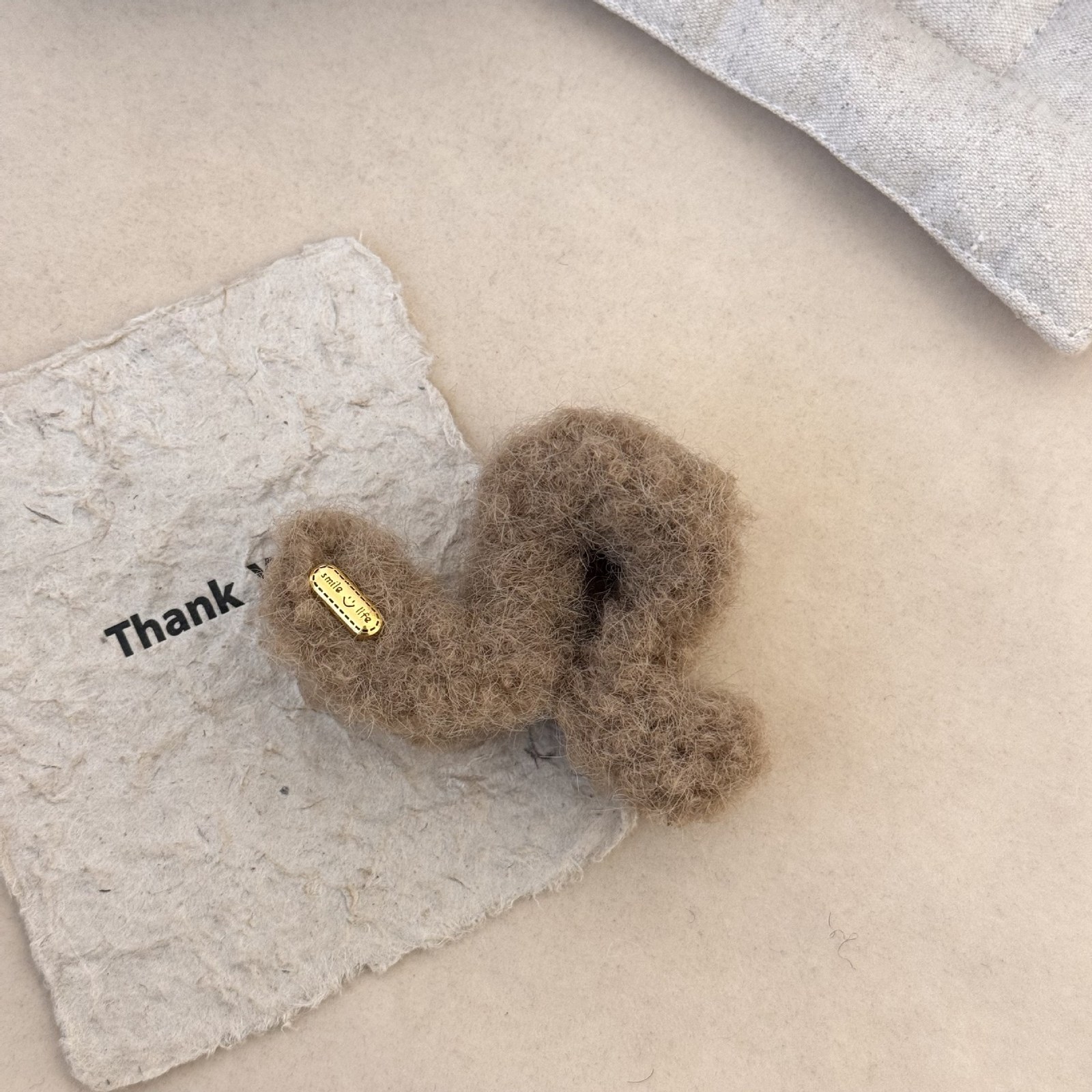 D8フェイクファーヘアバンド-ベージュブラウン