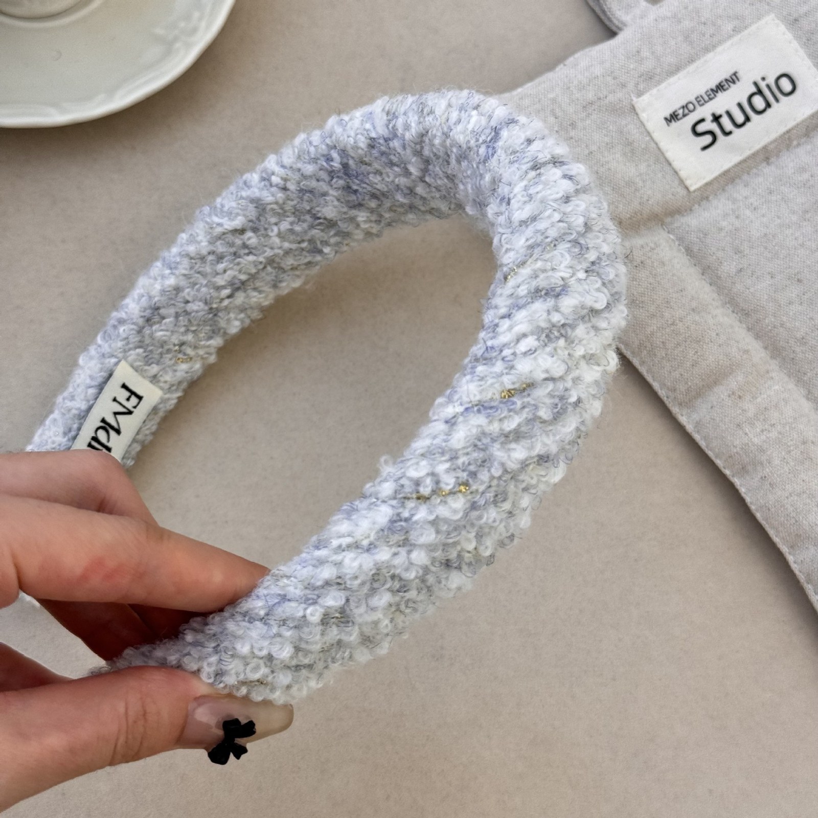 D8フェイクファーヘアバンド-クリームホワイト