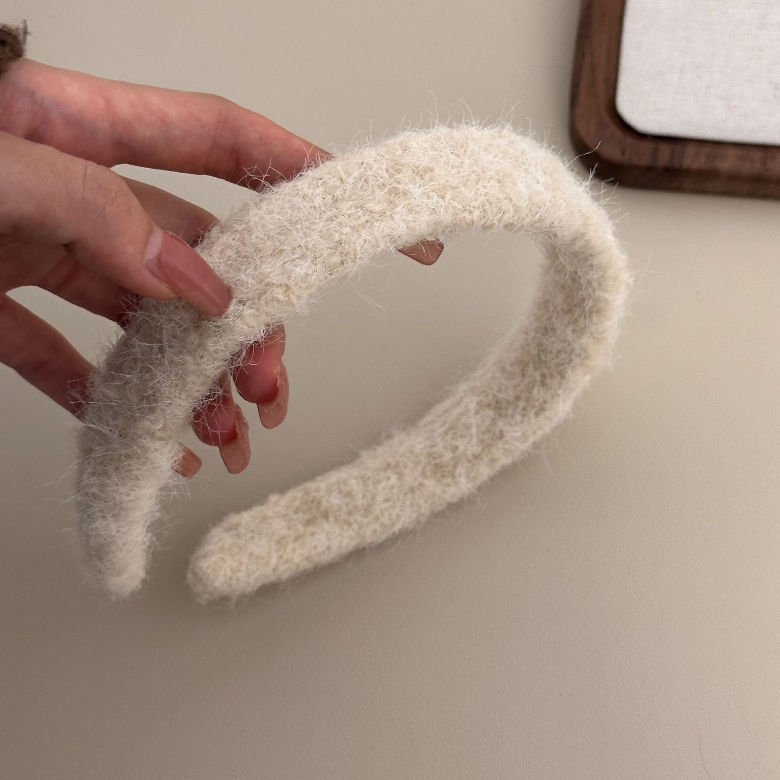 D8フェイクファーヘアバンド-ベージュブラウン