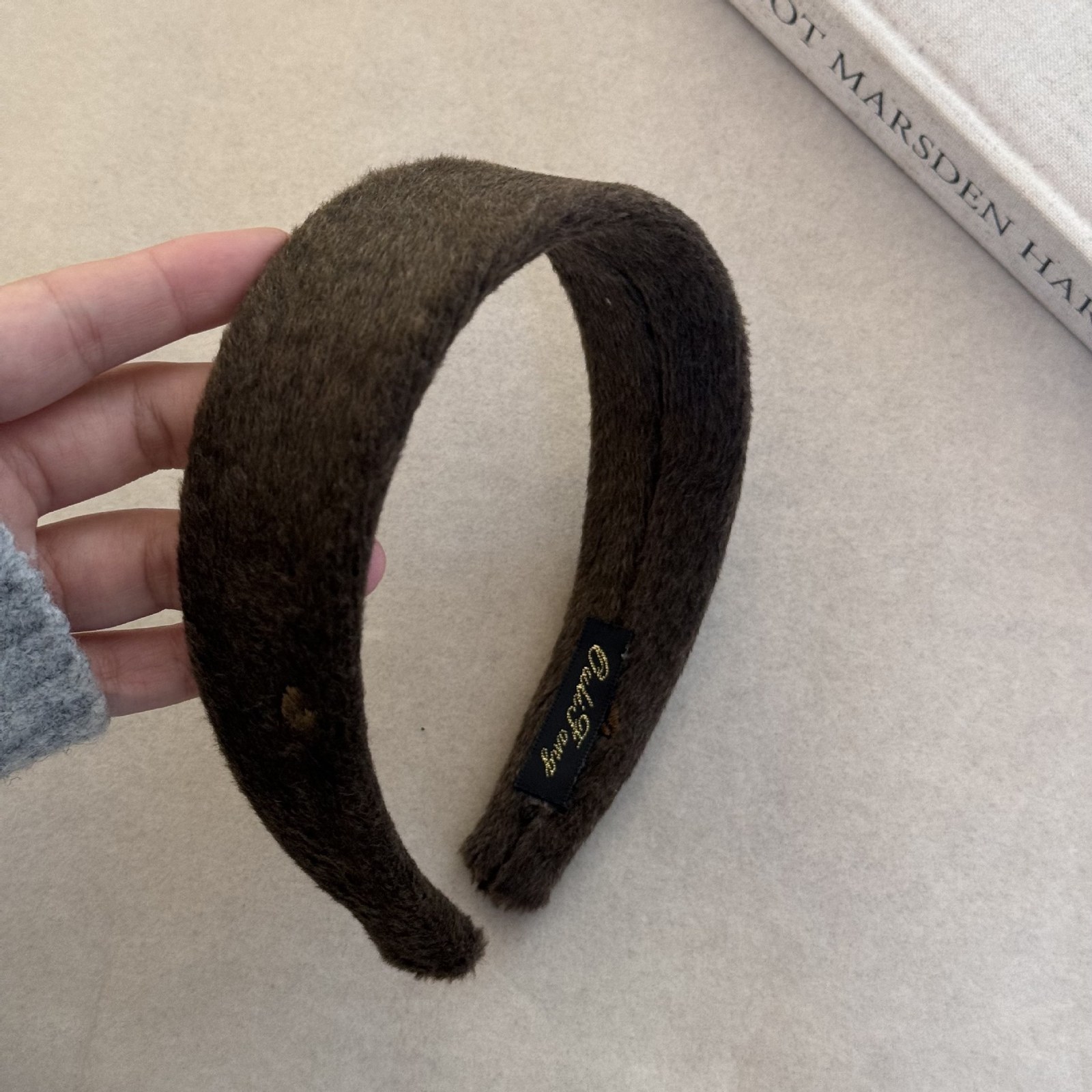 D8フェイクファーヘアバンド-ベージュ