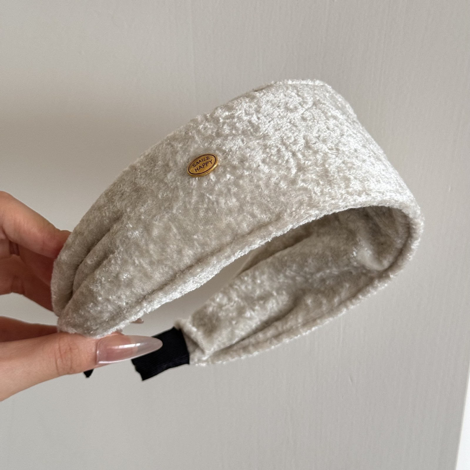 D8フェイクファーヘアバンド-ベージュブラウン