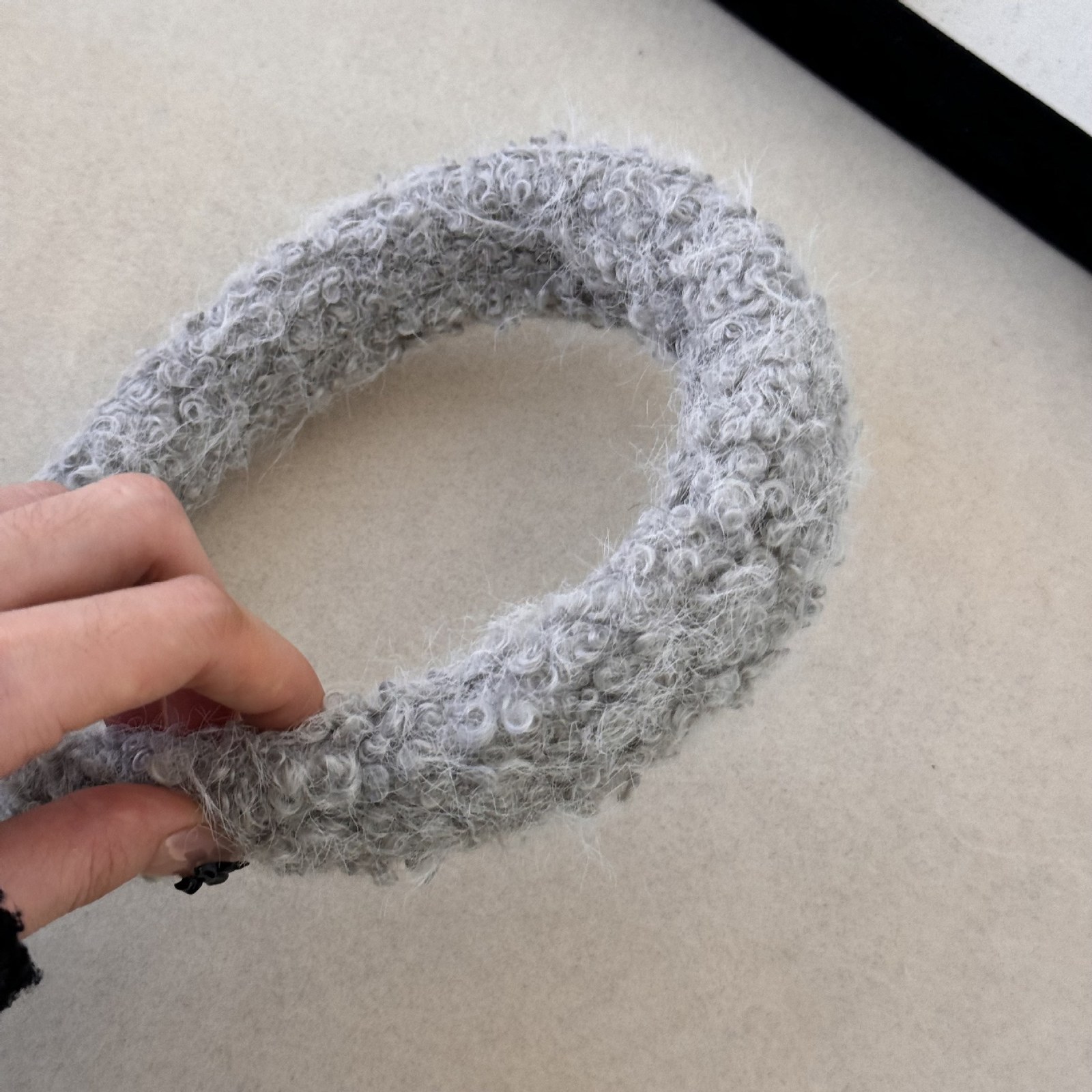 D8フェイクファーヘアバンド-ベージュ