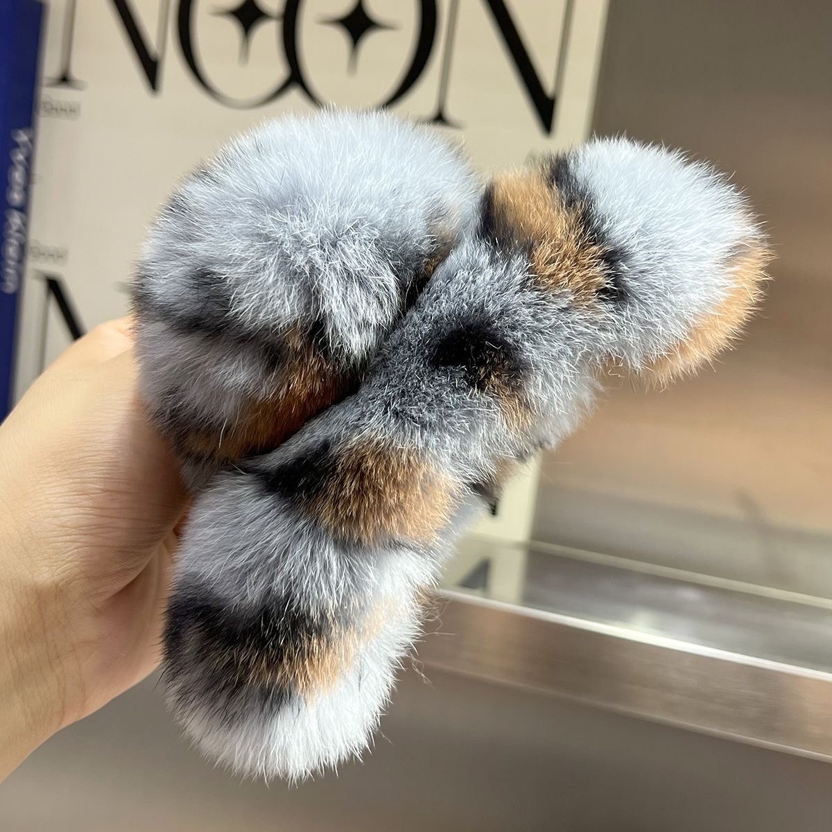 D8フェイクファーヘアバンド-オレンジ